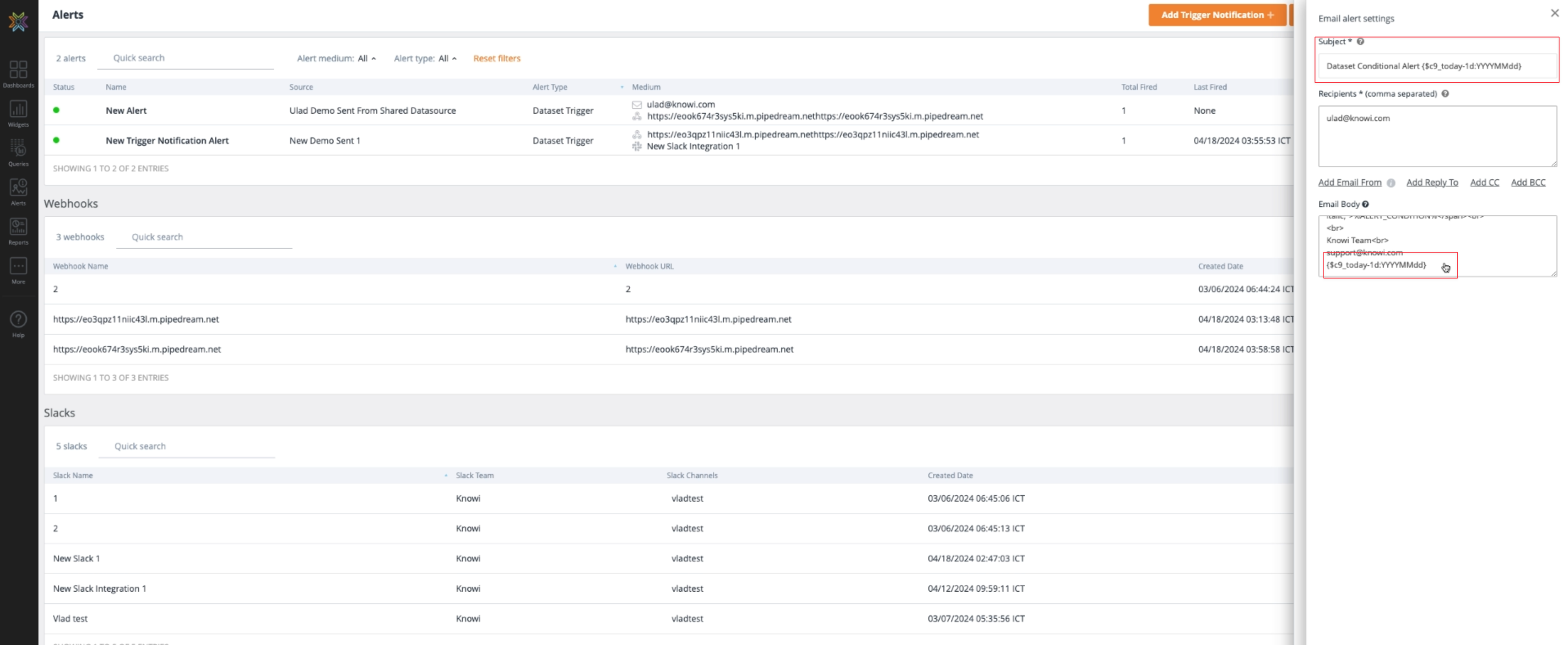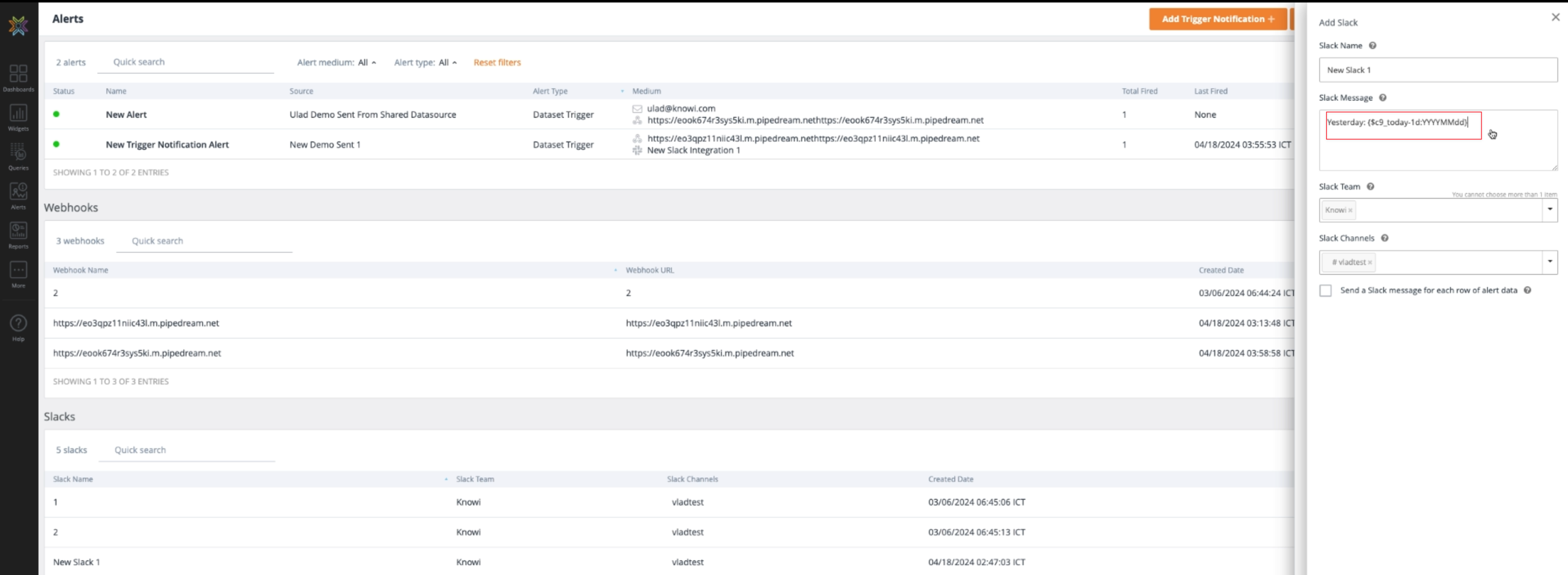 Date tokens can be used in emails, webhooks, Slack, and Teams.