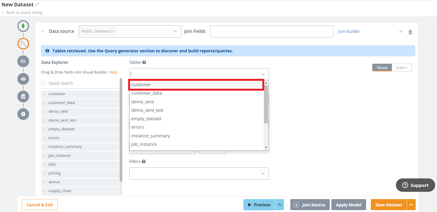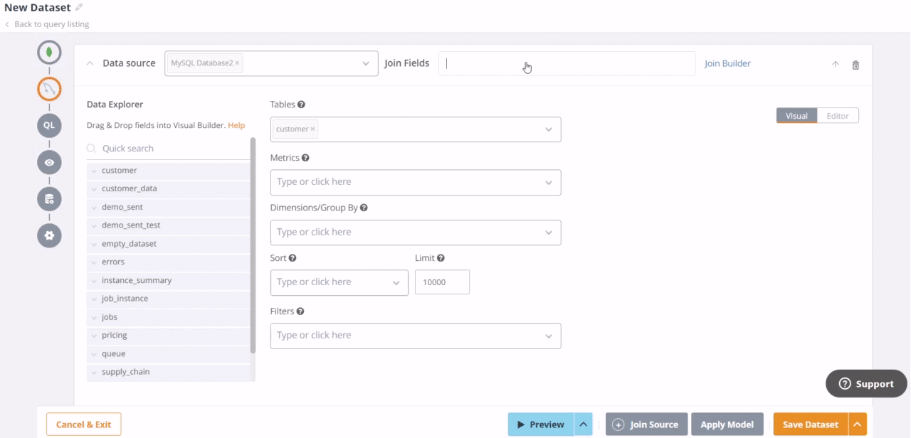 Step 5: Click on Join Source and select MySQL datasource (created in the Step 2 above) from the dropdown menu.