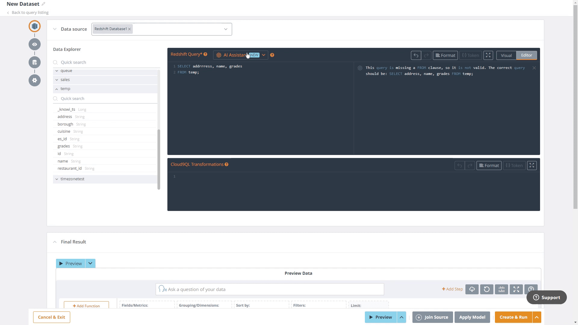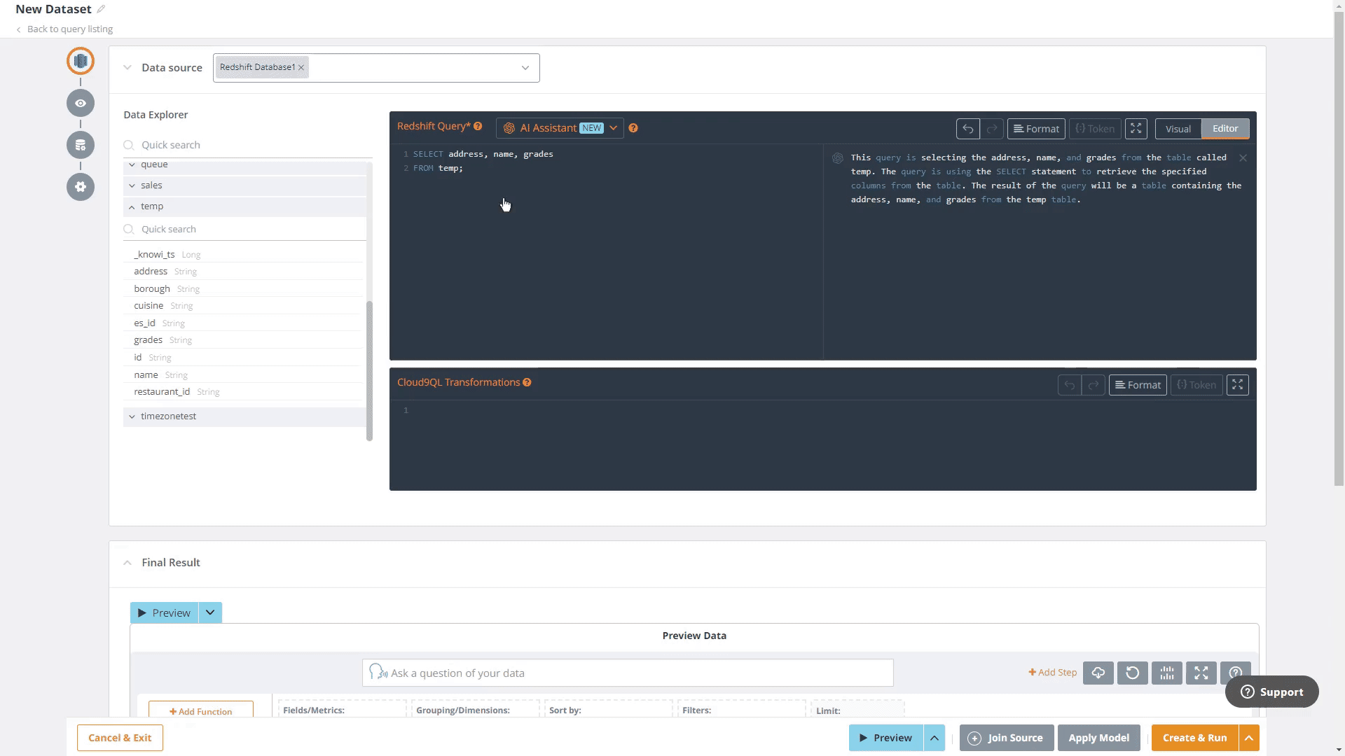 Furthermore, AI Assistant offers you additional features that can be performed on top of the generated query as listed below: