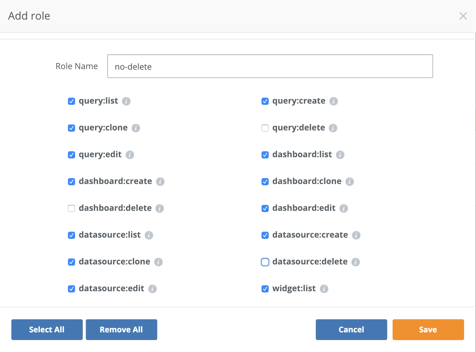 As a View only user, you are limited to consuming dashboards only. While you can download data associated with the widgets and run your own ad-hoc analysis on the data contained within the dashboards that you have access to, you will not be able to save or create any dashboards of your own. This role also cannot create any data assets, including datasources or queries. In addition, you will not be able to invite or manage other users or groups.