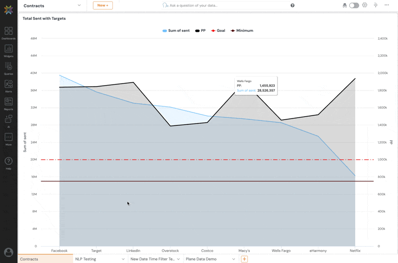 NLP Across Datasets - Enables NLP interface across datasets NLP Bot Integration -Enables NLP interface for slack/teams NLP Favorites - Configure a list of NLP queries per category type displayed when a user types in /knowi. Typically, this would be the most commonly used questions. NLP Synonyms - Configure a list of NLP synonyms. In the format: FieldName1=Synonym1,Synonym2,Synonym3 NLP Visualization first tab - On the dashboard, NLP search defaults to show the visualization first rather than the analyze grid.
