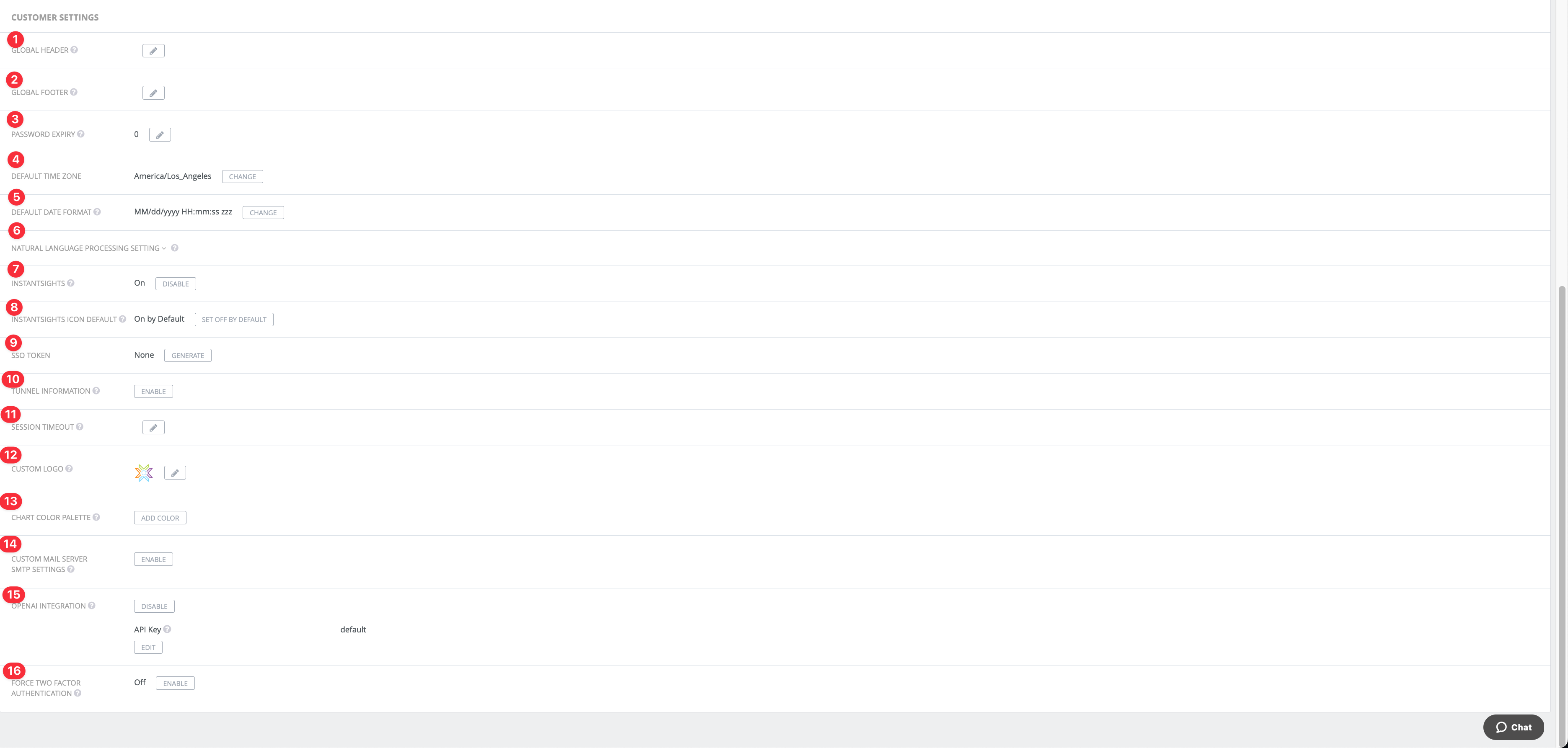 GLOBAL FOOTER: Define HTML snippet to globally apply a custom footer across all dashboards. Footers can also be set at a specific dashboard via the Dashboards settings.