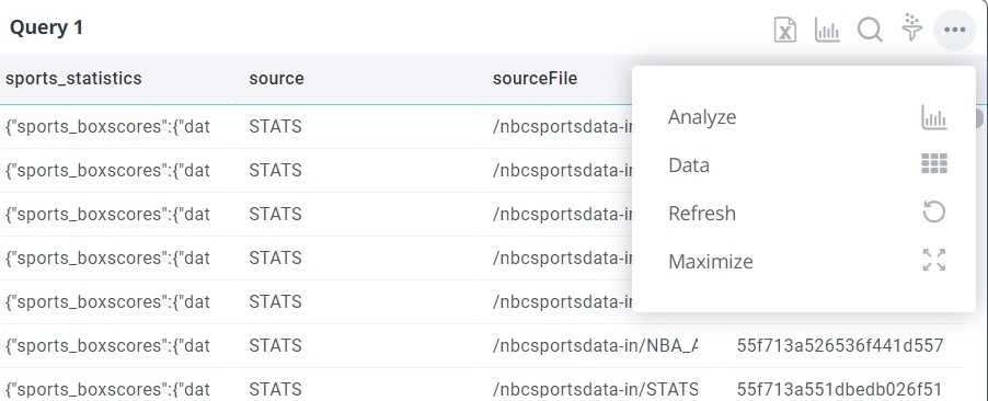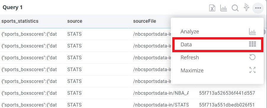 The Data option will allow you to view the data for the selected widget, view the corresponding data types, and also to download the data if required.