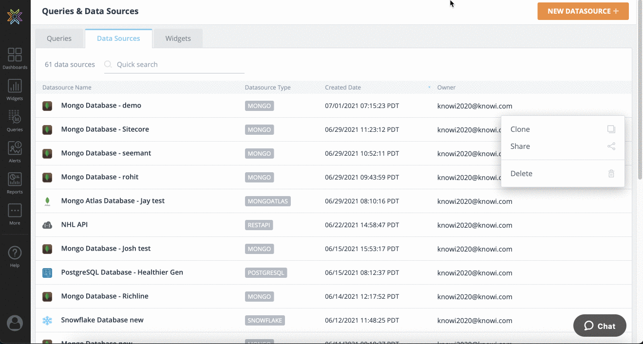 Knowi provides a variety of powerful options on user rights, access management and external authentication methods for both internal usage and embedded usage modes.