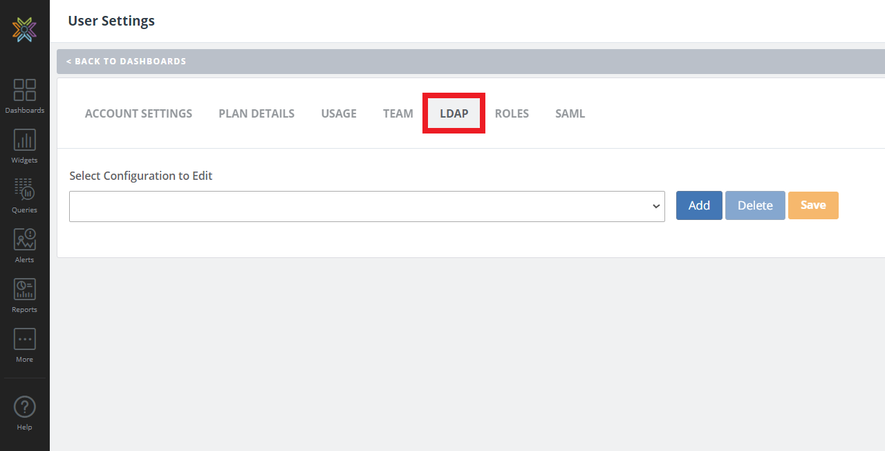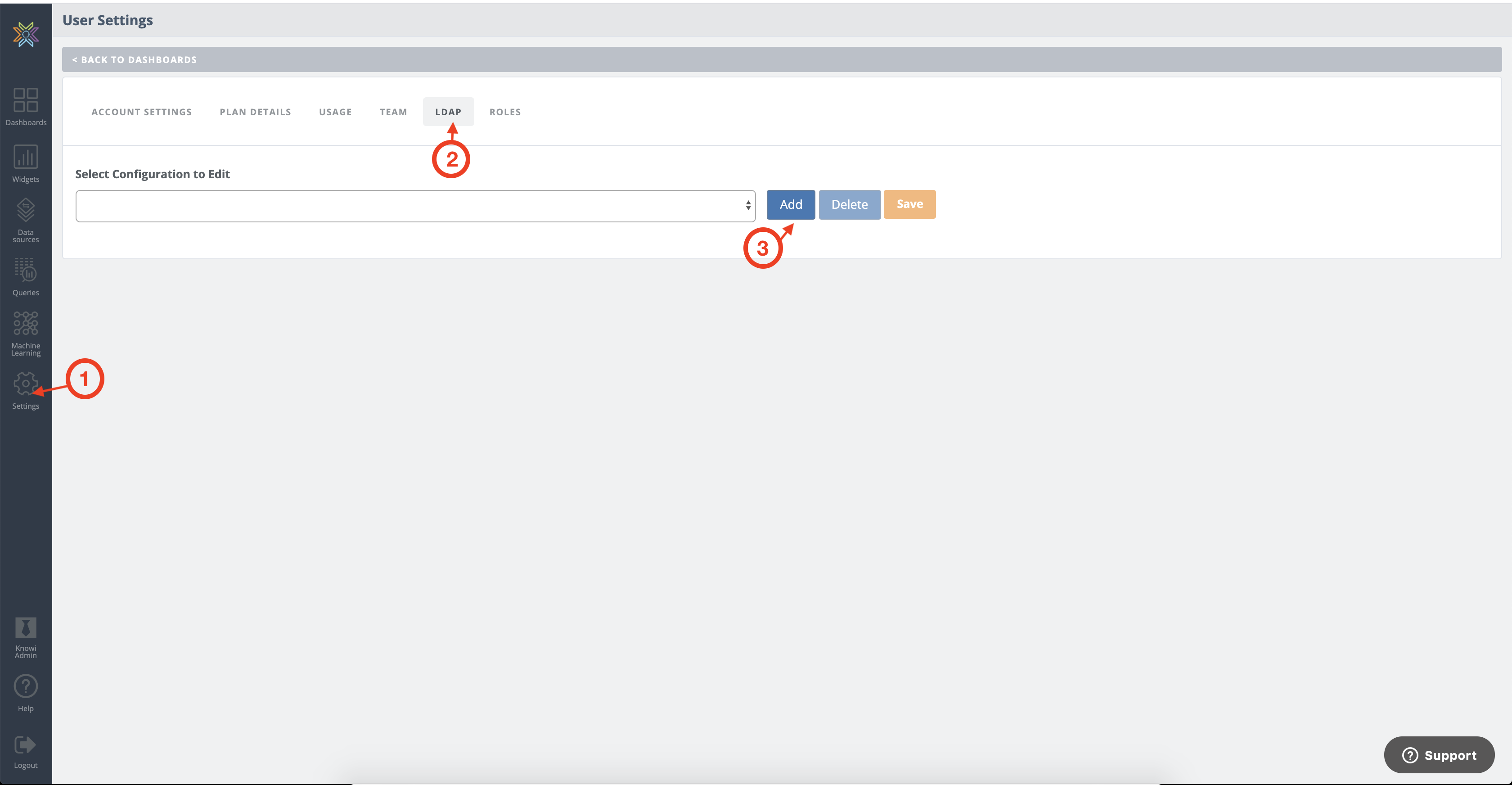 Knowi supports transport/encryption via LDAP in the clear and LDAP over TLS. LDAP over TLS is strongly recommended. The LDAP tab can be found within User settings.
