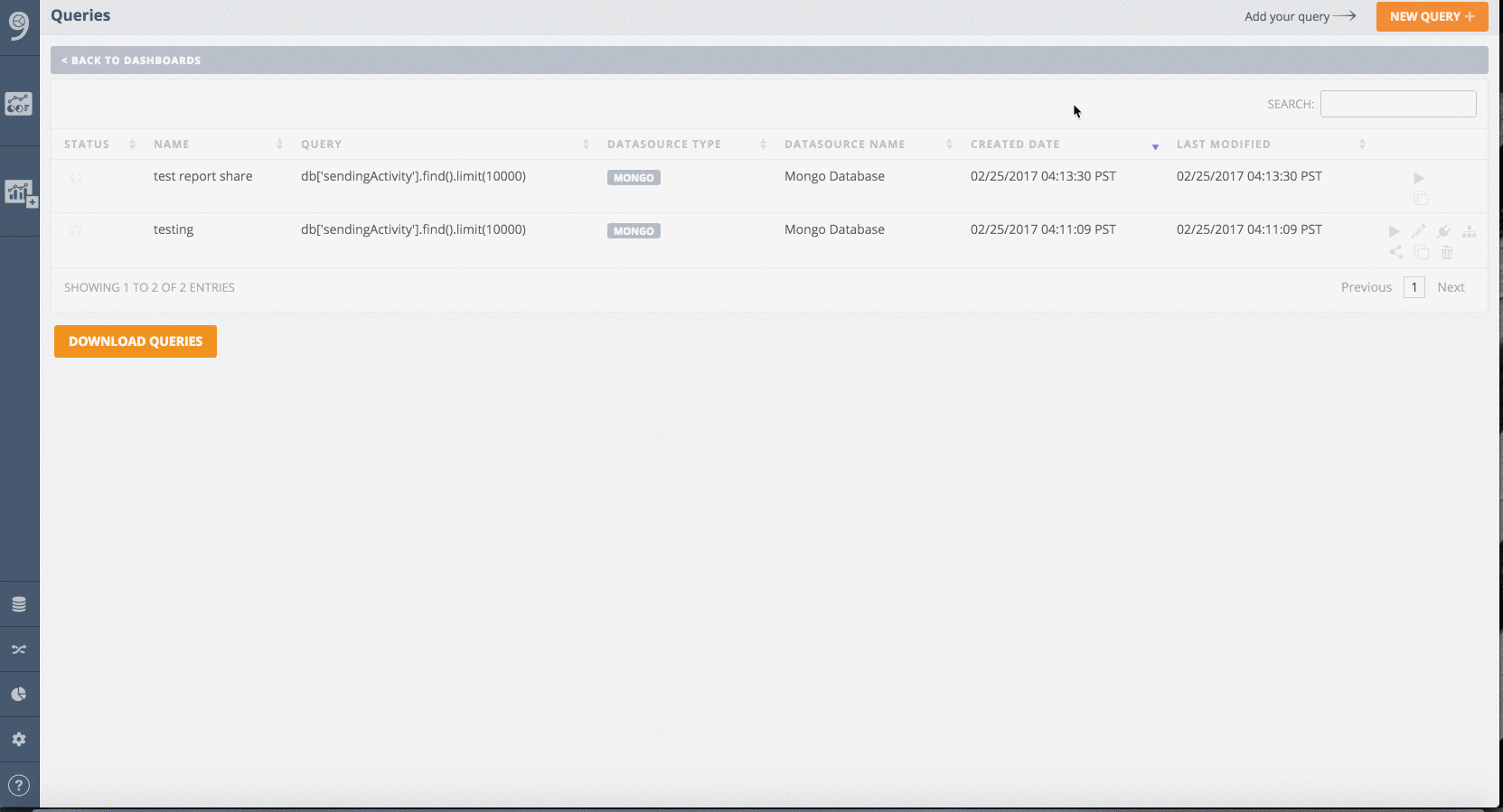 Queries can be shared with Edit or View only rights to groups and/or users. Edit rights enable collaboration on the same query by multiple users and includes edit, clone and delete rights for that query. A query shared with view only rights can be executed and cloned to create a user's own version of the query.