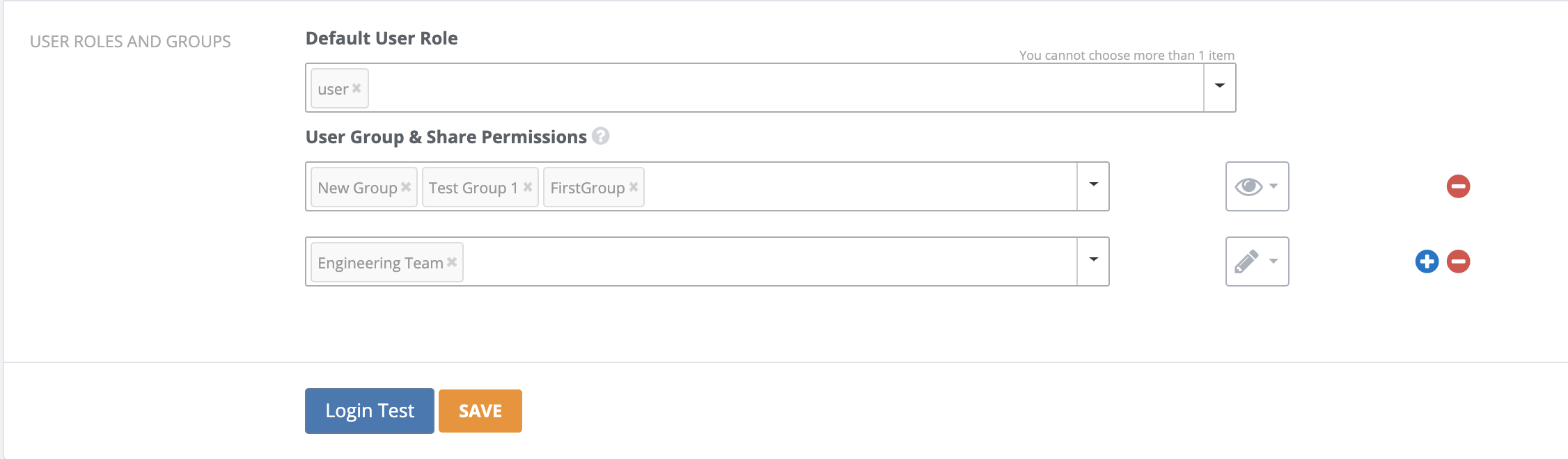 You can set a default role and groups for new SAML users. In the User Roles and Groups section, enter the names of any Knowi roles or groups to which you want to assign new Knowi users when they first log in to Knowi.
