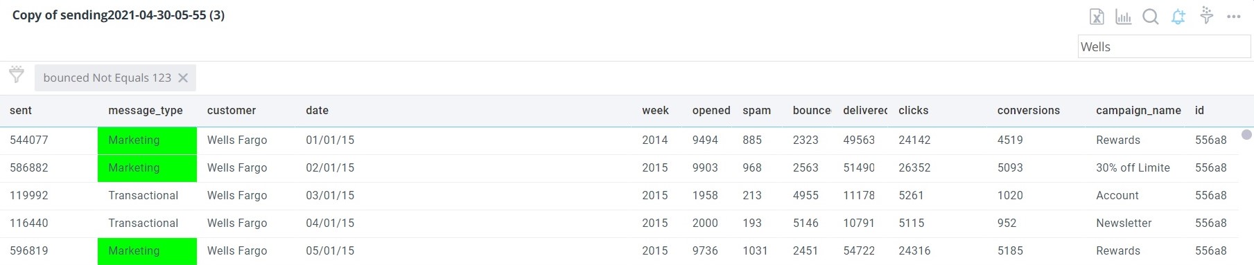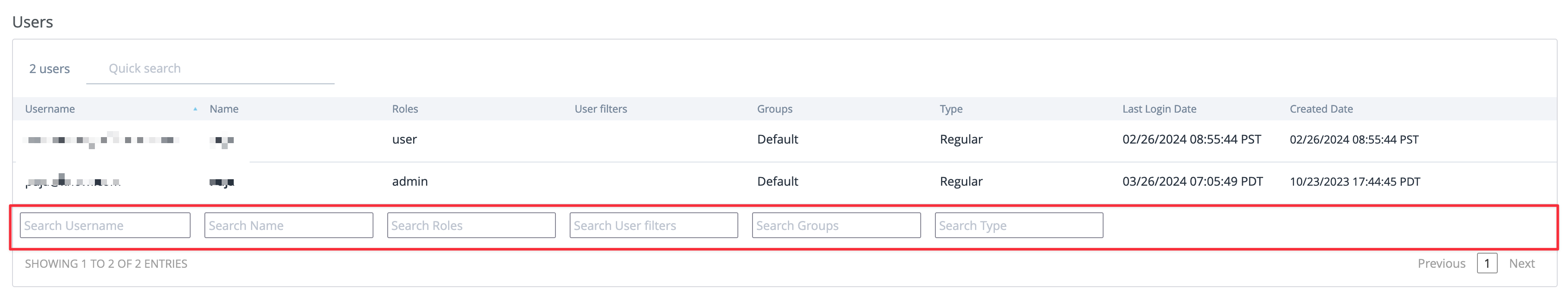 Basic filtering can be used to set filtering on the data with help of filter icon. For more information, please refer Widget Filters section of our documentation.