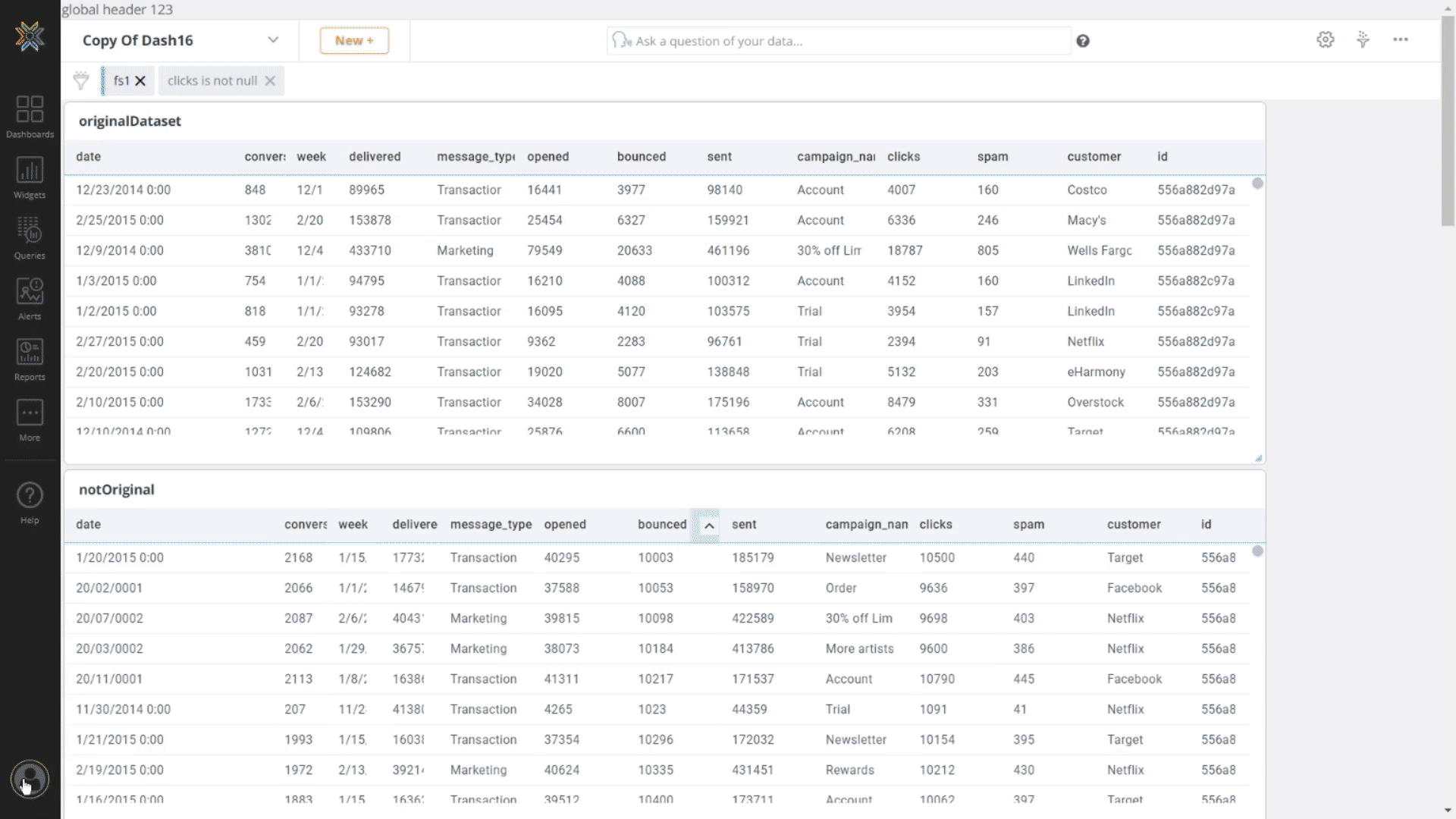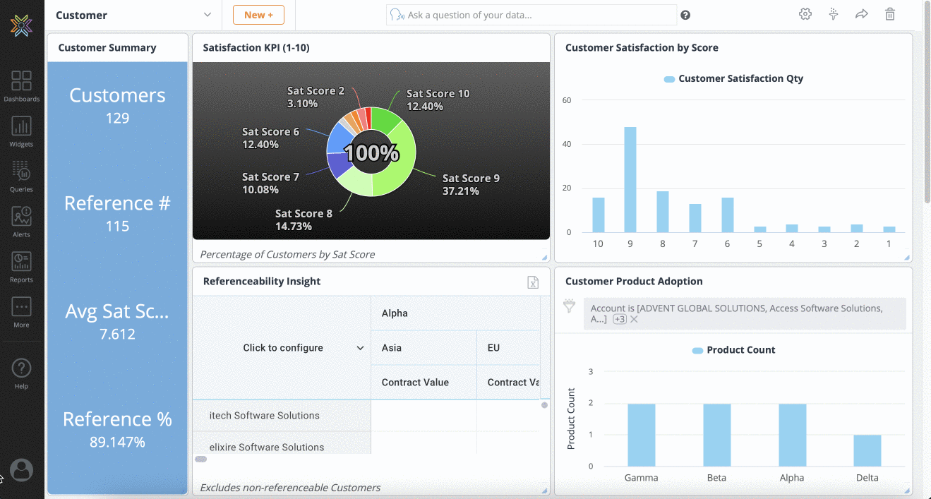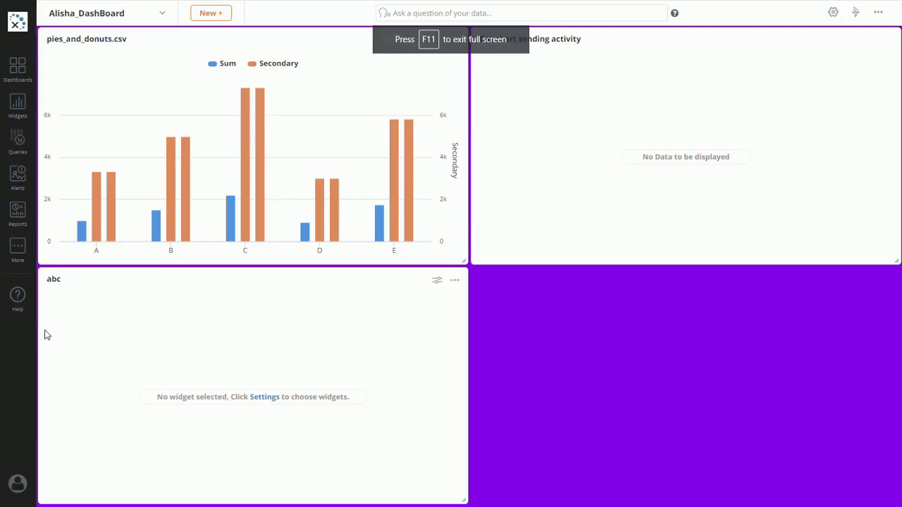 Each Dashboard will contain one or more Widgets. A Widget is simply another term for a visualization of the underlying data.