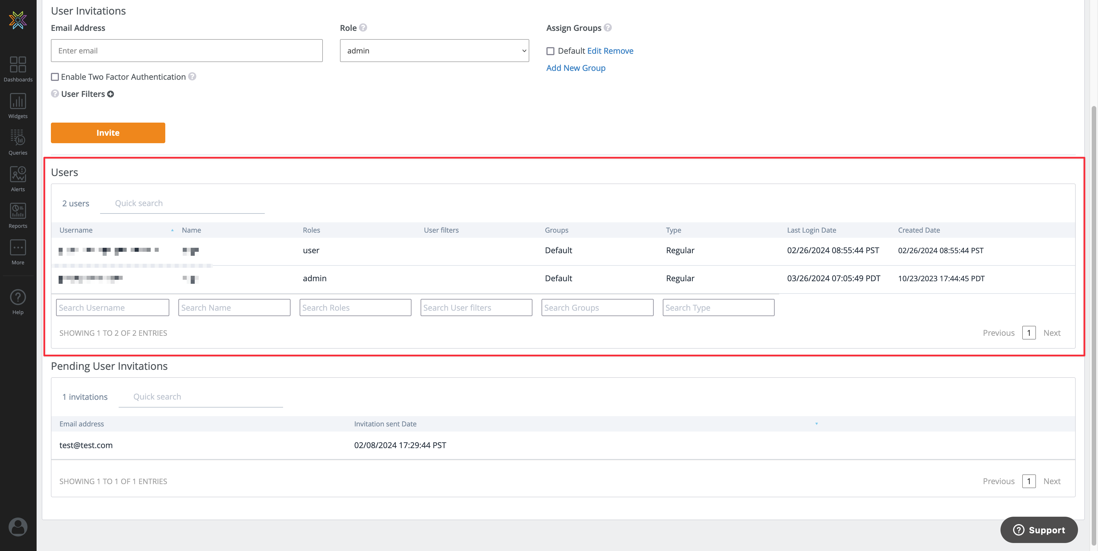 Example: Let's say an "engineering" group writes and publishes baseline queries to an analyst and wants to maintain the original queries and does not want that user to publish queries back to the engineering group. This can be done by setting the rights during the user invite. The analyst can publish it to their own groups, but cannot post back to the parent group.