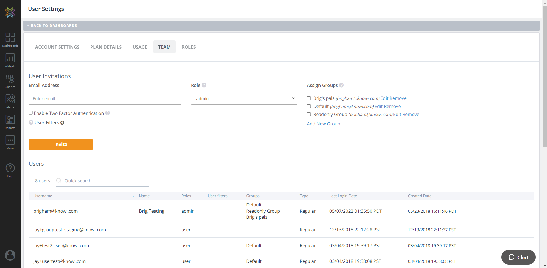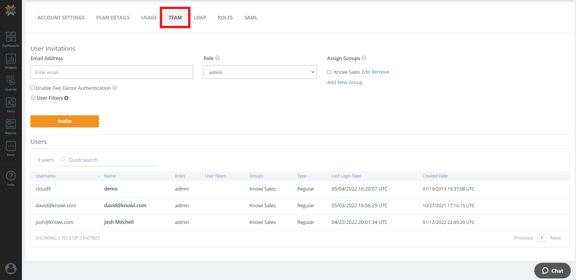 To learn more about different user roles in Knowi i.e. - Viewer, User, and Admin, please refer to the documentation on User Roles.