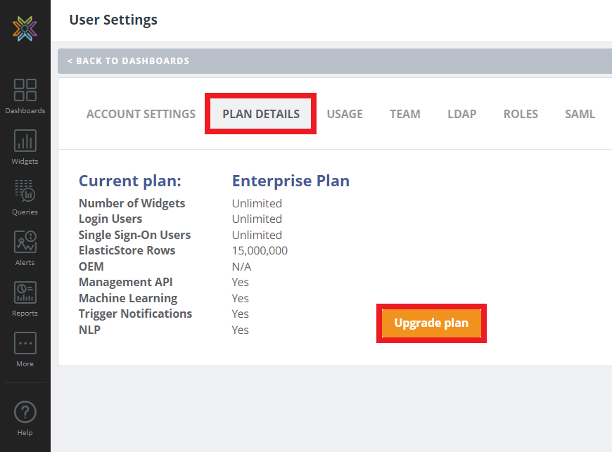 Navigate to the Plan Details tab to view the current plan and the features available within the same. Click on the Upgrade Plan button to send the Plan Upgrade request.