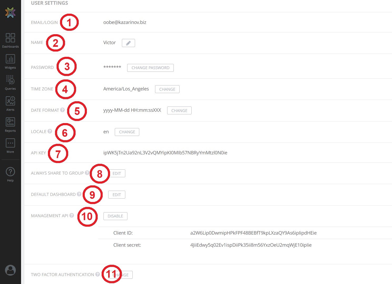 MANAGEMENT API: Enable Management API to generate the client ID and client secret. This will allow the external services and apps to manage users and groups, datasources, queries, dashboards, and widgets programmatically.