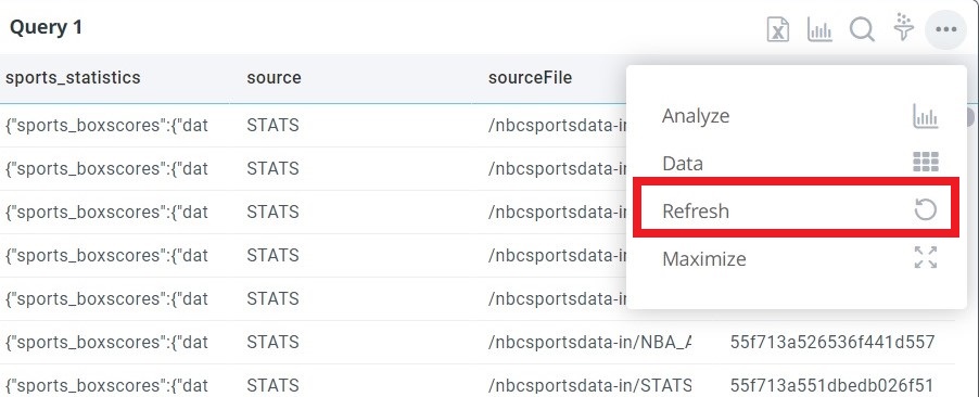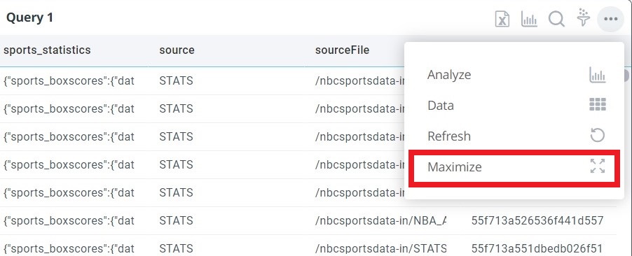Clicking on the Settings icon will open up access to 4 further Widget functions. These are: Analyze, Data, Refresh & Maximize.