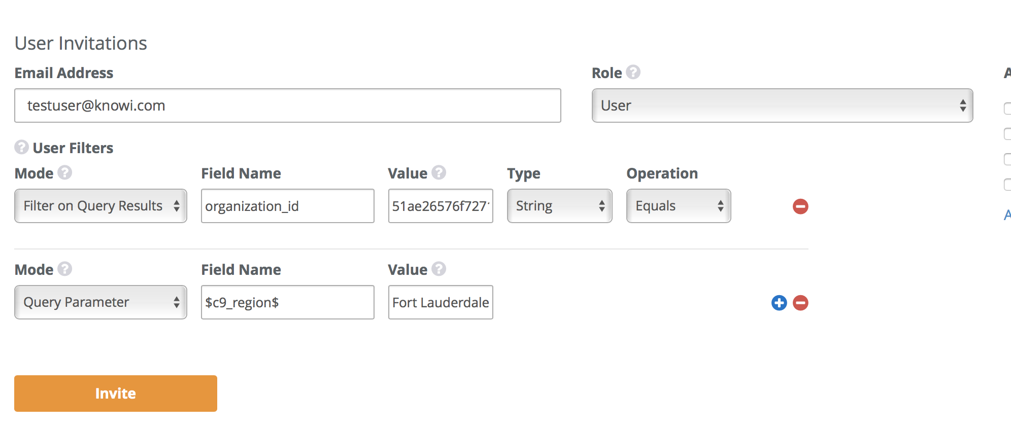 Following example limits a user to a specific organizationid, applied on the top of the results of the query. Note that the organizationid must be present in the dataset for the filter to take effect.
