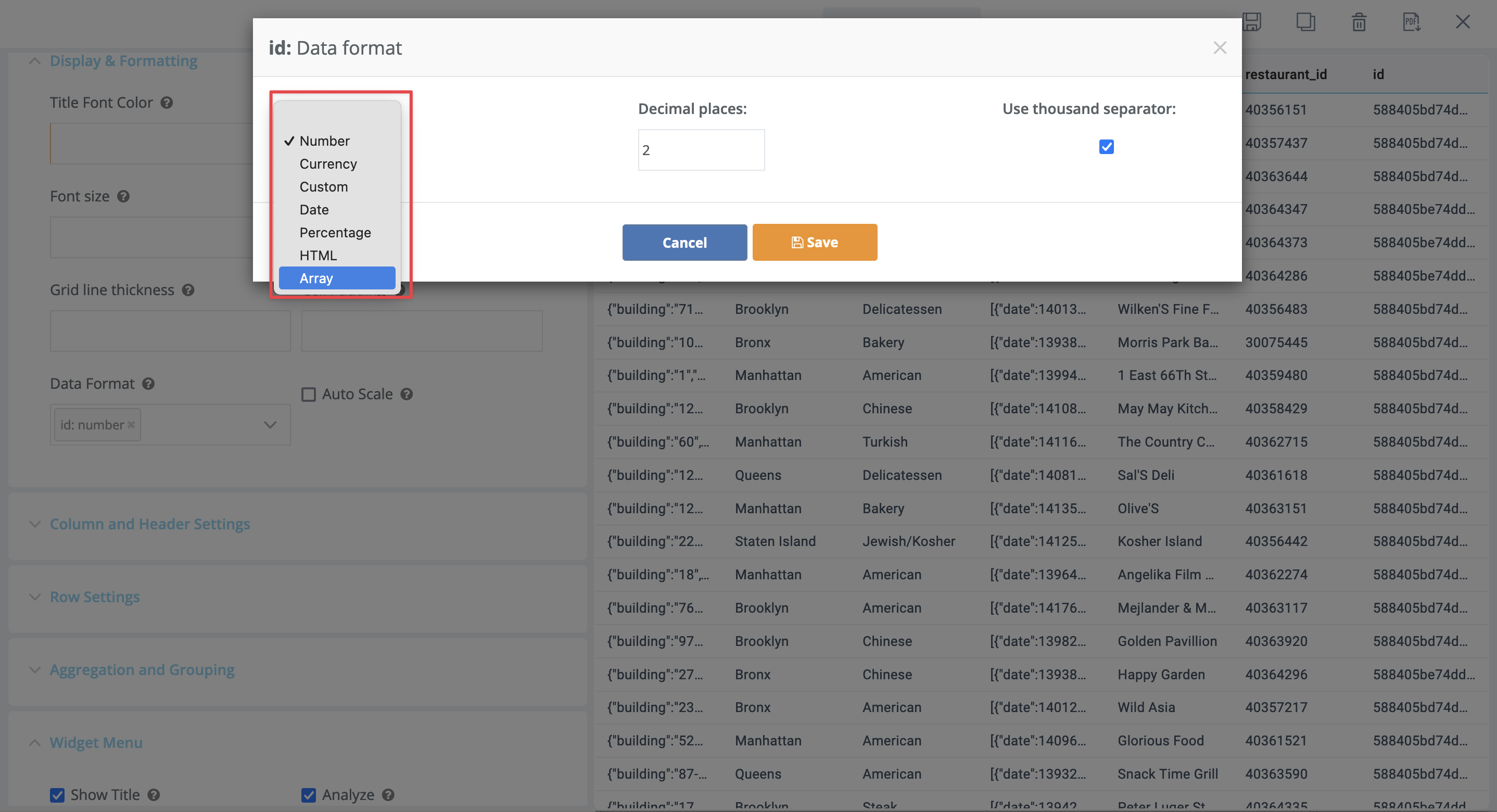 | Live Data | Check the box and specify a frequency for in-dashboard widget auto update (when displayed on a TV screen for example) |
