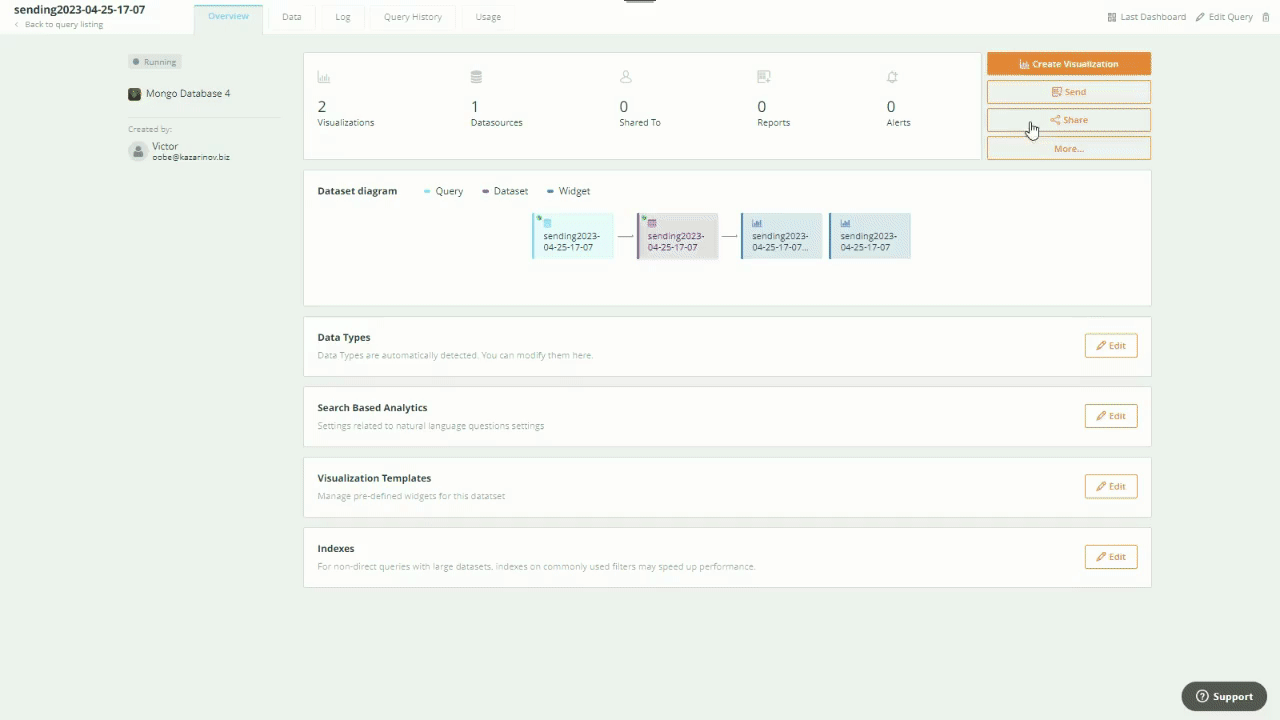 You can preview visualizations, edit the query directly from the diagram, and zoom into any derived datasets.