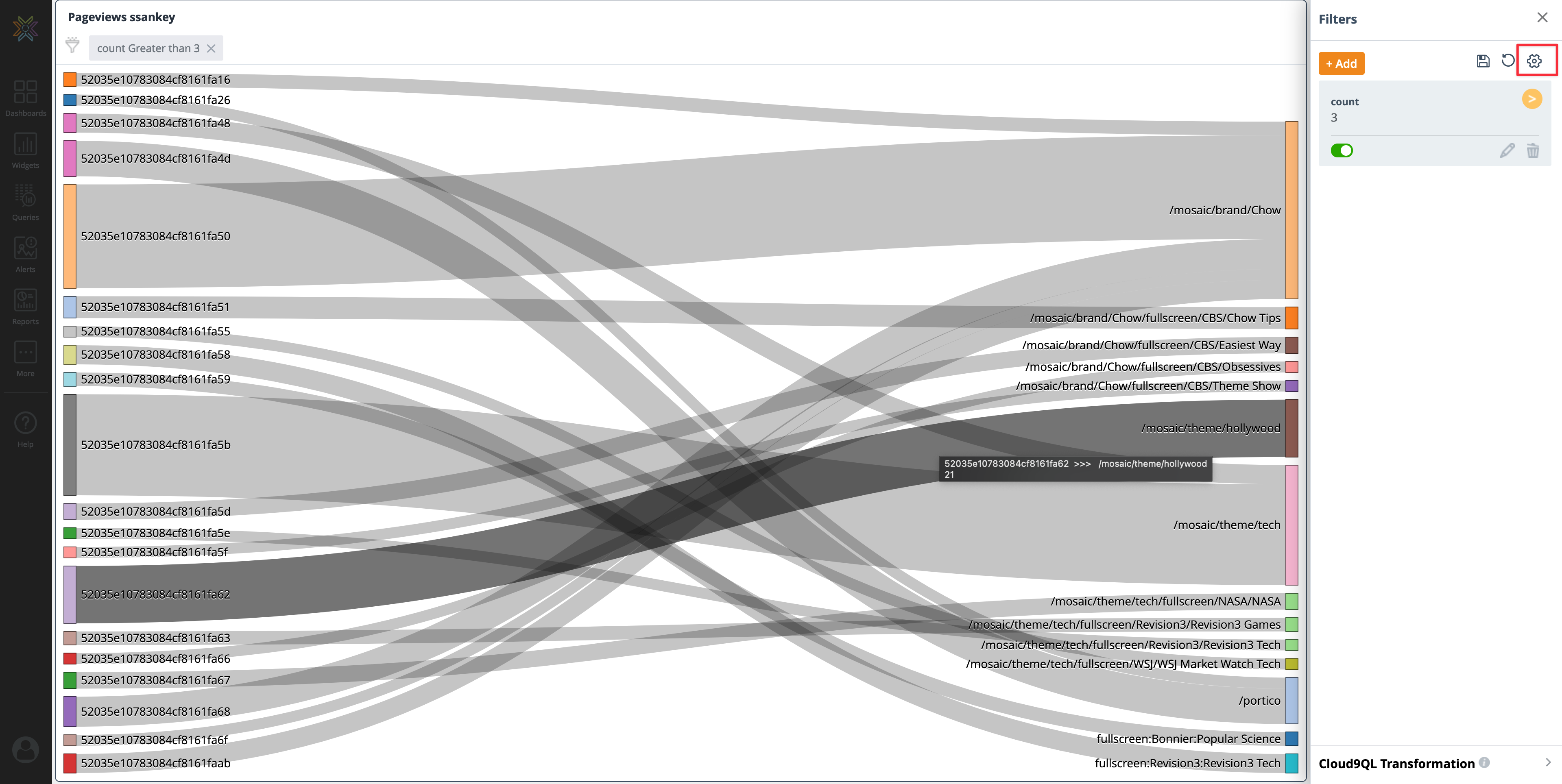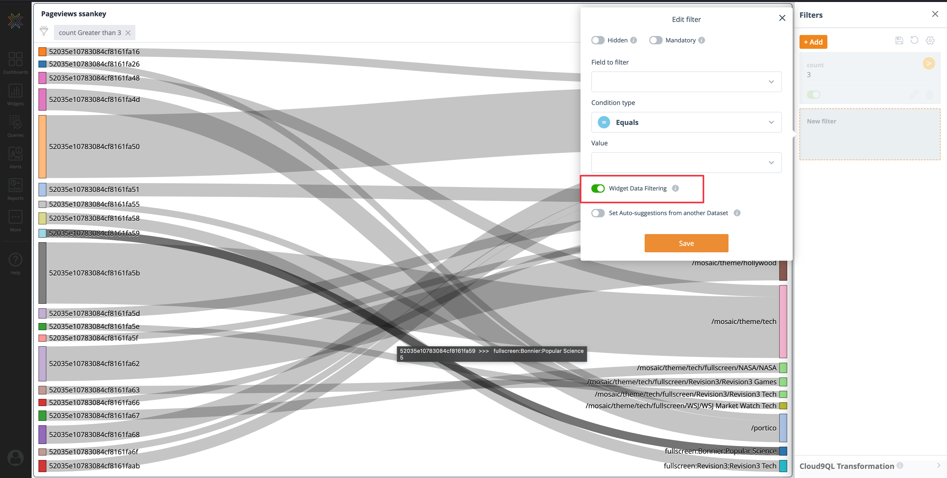 Filters and Cloud9QL can be applied to the new widget to further manipulate the cloned widget.